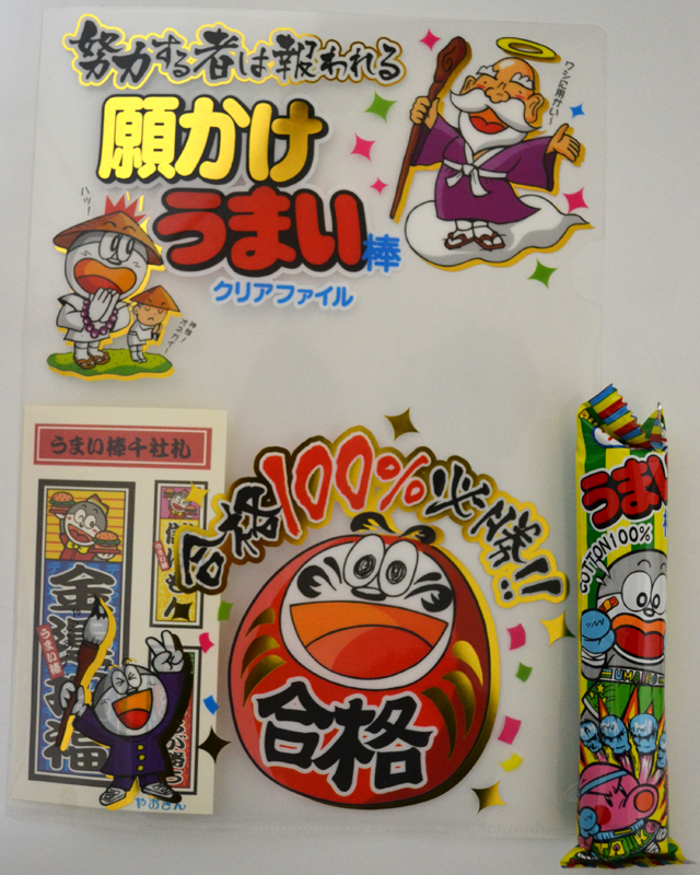 中に願かけうまい棒クリアファイルと千社札